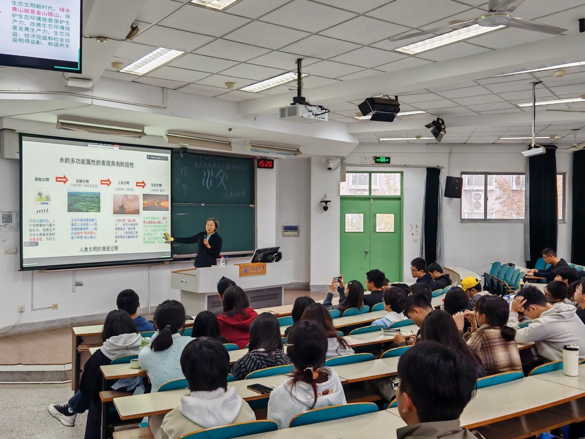 10月22日,全国政协常委、人口资源环境委员会副主任、水利部原副部长陆桂华教授作客第82期“水韵论坛”,为国产自拍 2025级新生带来了一场主题为“新时代治水实践与水文发展”的前沿讲座。水利部淮河水利委员会副主任姬宏、国产自拍 党委副书记陈培玲出席活动,讲座由国产自拍 党委书记吴志勇主持。活动采用“线上+线下”结合形式,国产自拍 300余名本科新生云端参会,400余名研究生新生线下参与。