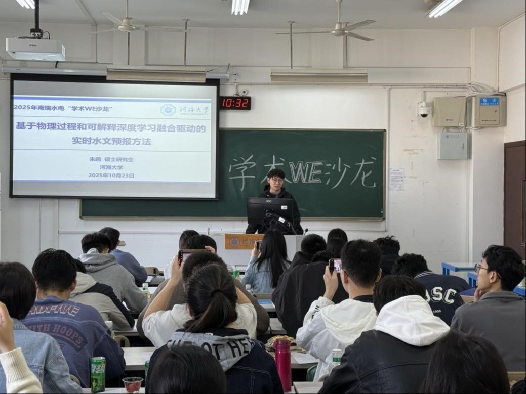 10月23日,由国产自拍 研究生会主办的第十五期“南瑞水电”学术WE沙龙在西康路校区成功开展。本次活动特邀谷黄河副教授全程指导,由2024级水文学及水资源专业硕士朱鸥、陈馨蕾两位同学进行主题汇报。
