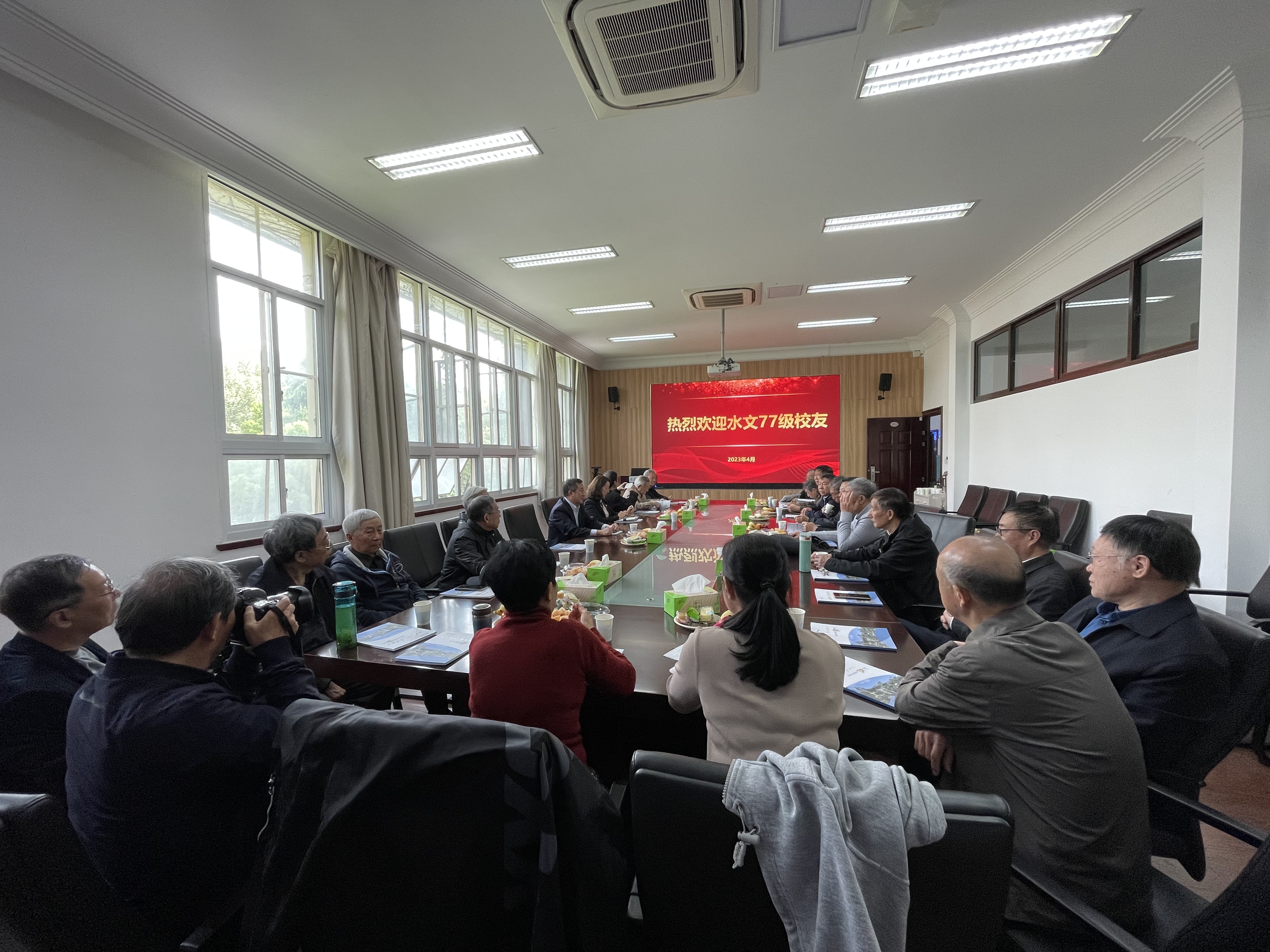 4月12日,国产自拍 (原华东水利学院)陆地水文专业77级校友满怀对母校的眷恋和感恩、对老师和同学的思念和深情,重返国产自拍 西康路校区举办入校45周年纪念活动暨师生座谈会,邀请了时任老师著名水文学家崔广柏教授、芮孝芳教授,辅导员张宗德、潘洪山老师等参加活动,重温青春时光,再叙袍泽之情。国产自拍 原校长张长宽、原副校长董增川和国产自拍 党委书记孔祥冬、副院长李国芳出席了座谈会。