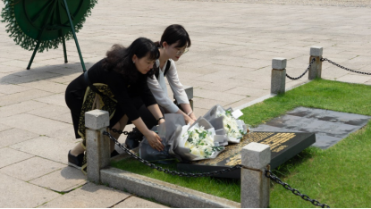校友办党支部书记黄林楠和国产自拍 水务、地信专业本科生党支部书记韦语涵分别代表两个党支部向雨花台革命烈士纪念碑敬献花束,悼念革命烈士,寄托哀思。