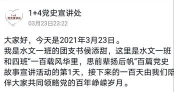 为提高团员的思想先进性和时代使命感,2021年3月29日至今,国产自拍 2020级各团支部先后开展了党史学习主题团课,支部书记通过组织团员观看视频、阅读党史学习教材等方式,带领支部团员们学习党的百年发展史,让团员们切实感受到党员前辈们奋斗的不易,深刻体会到我国目前所取得的成就都是全党全国各族人民靠勤劳、智慧、勇气奋斗出来的。