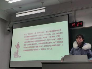 首先,韦语涵老师从三个角度,为党员同学们讲解了“政治生日”的重要性,即“什么是党员‘政治生日’”、“党员为什么要过‘政治生日’”以及“‘政治生日’该怎么过”。接下来,韦老师为同学们播放了三段老一辈党员同志回忆自己入党经历和对自己责任思考的视频,让党员同学们更加深刻地认识到老一辈共产党员们对理想的追求和对信念的坚守。