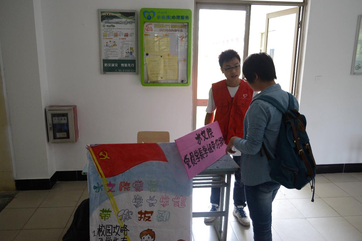 金秋九月,丹桂飘香。又是一年迎新季,九月的河海再度沸腾,迎来了怀揣梦想、意气风发的2013级新同学。水文水资源学院学生党员群众路线实践教育活动之“党员师兄师姐带你报到”活动也如火如荼的深入开展着。