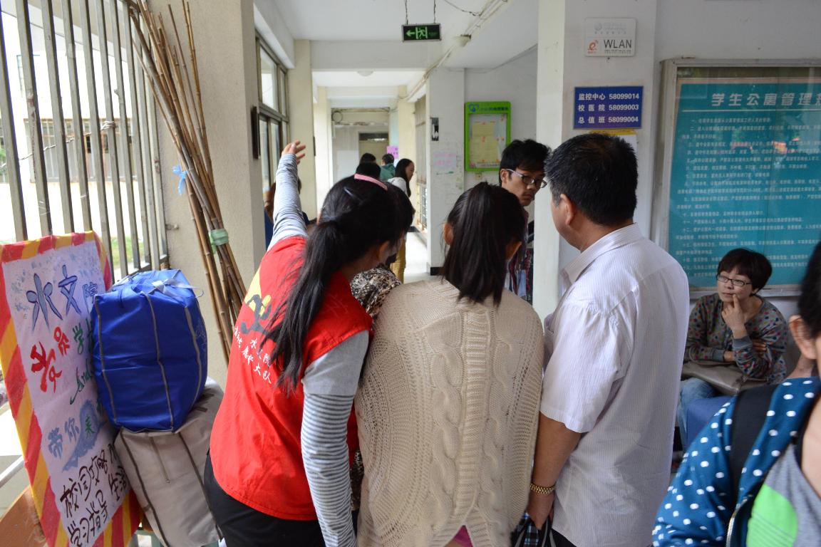 2013级男、女生宿舍分别设置了服务站轮班执勤,给新同学提供校园攻略、入学指南、学习指导、生活资讯等方面的内容帮助。高年级党员同学还深入宿舍看望新同学,帮助新生解决实际困难,顺利融入大学生活。即使前来报到的新生越聚越多,各种各样的询问也接踵而来,但是国产自拍