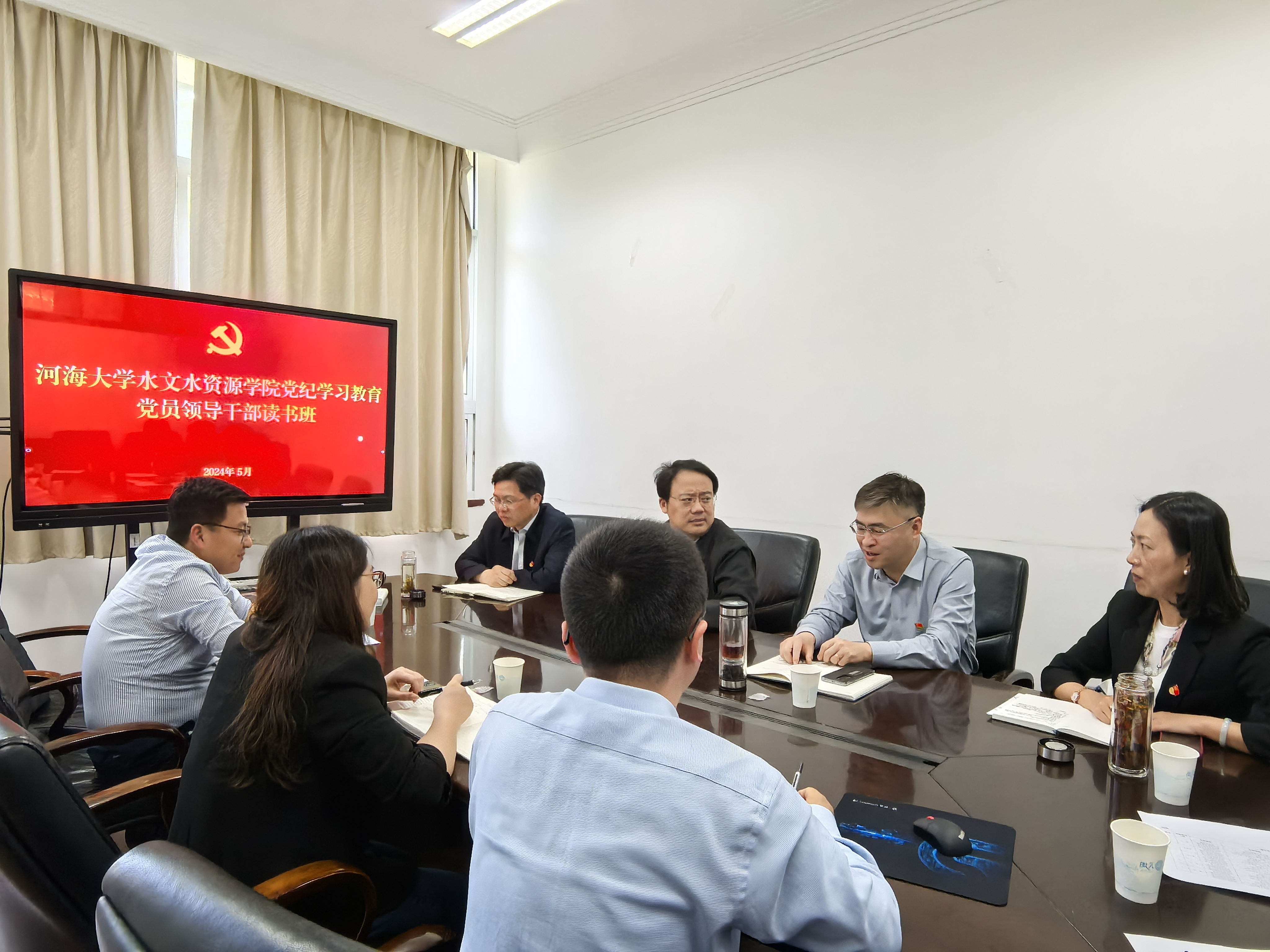 5月9日,国产自拍 党委党纪学习教育读书班开展集体学习研讨。院党委书记石朋主持会议,学院党员领导干部、党委委员参加读书班学习。