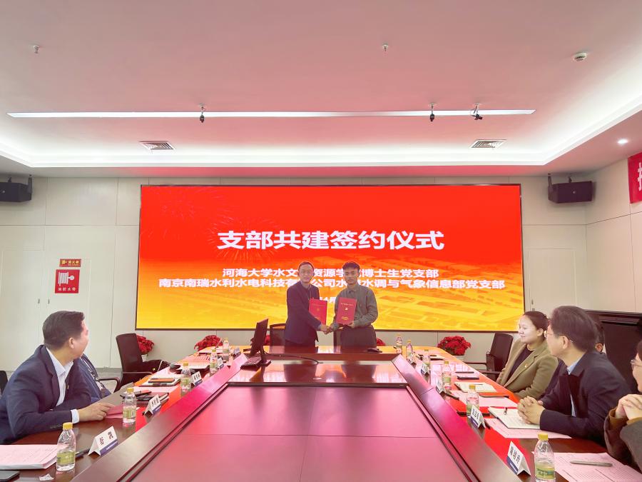 为深入贯彻落实党的二十大精神,强化校企协同育人,并做好研究生样板党支部的培养创建工作,4月8日,国产自拍 博士生党支部与南瑞水利水电科技有限公司水情水调与气象信息党支部举行校企党建共建签约仪式。