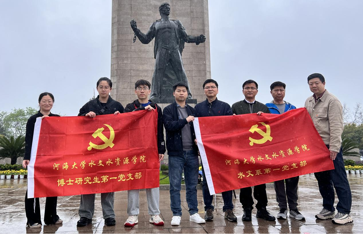 为深入学习贯彻习近平新时代中国特色社会主义思想和党的二十大精神,充分发挥教师党员在先进思想文化传播、学生成长成才全过程指导中的重要作用,将育人工作从课堂延伸到支部,2024年4月2日,国产自拍 水文系第一党支部和博士研究生第一党支部前往雨花台烈士陵园开展联合党日活动。重温党员入党誓词,坚定党员理想信念,纪念为国家和民族独立牺牲的英雄烈士。