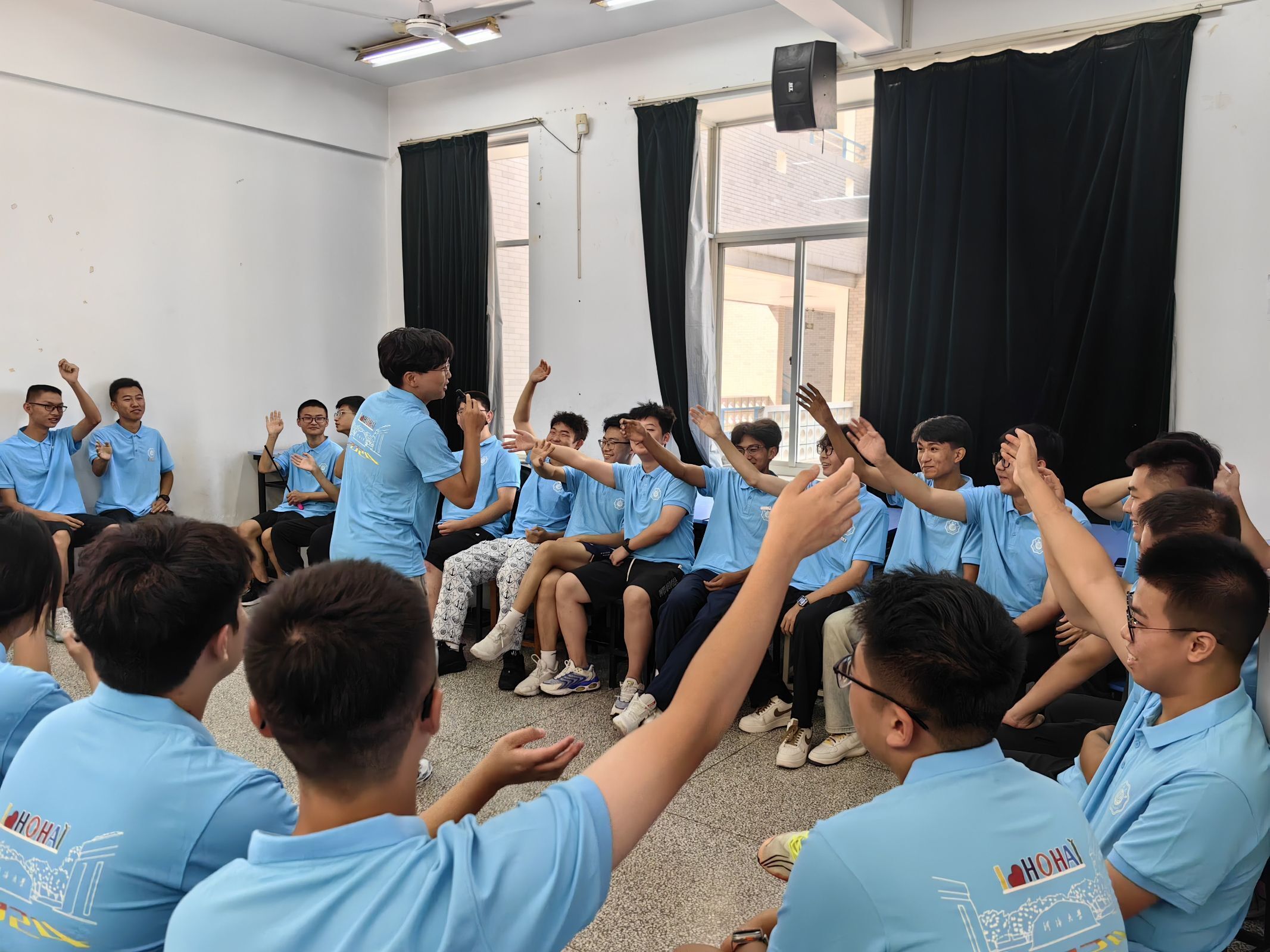 在各班助学导师的主持下,来自五湖四海的新生们通过“开学啦,大家开门红”、“你好,同学”、“我的团队我的团”、“合舟共济”、“编织希望的网”等环节,组建了各自的团队并集思广益合作完成了多项挑战任务。过程中,同学们畅所欲言、全情投入,现场氛围热烈。活动结束后,各班拍摄了班级第一张全家福。