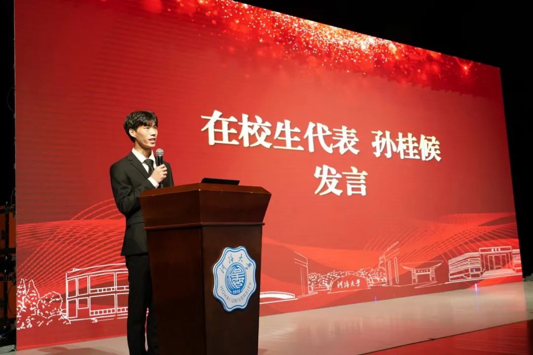 孙桂候在日常学习生活中充分发挥学生党员的模范带头作用,并积极参加党内活动和各类红色研学活动。他作为领学人为党员同学们和低年级团员同学主讲党课,带领同学们共同学习中国共产党人的精神谱系;作为党员代表参加接力诵读《中国共产党简史》,号召同学们一起在党史学习中坚定理想信念,不断奋勇向前;作为党员先锋岗的一员,他认真做到“亮身份、树形象、作表率”,结对帮扶困难同学,并面向低年级开展经验分享会。今年9月,他还在学院2023级本科生开学典礼上作为在校生代表发言。此外,孙桂候作为国产自拍 “闻天”管乐团单簧管声部的一员,在建党百年文艺晚会等多个舞台上奏响了《红旗颂》等红色乐曲,用音乐传承红色经典。