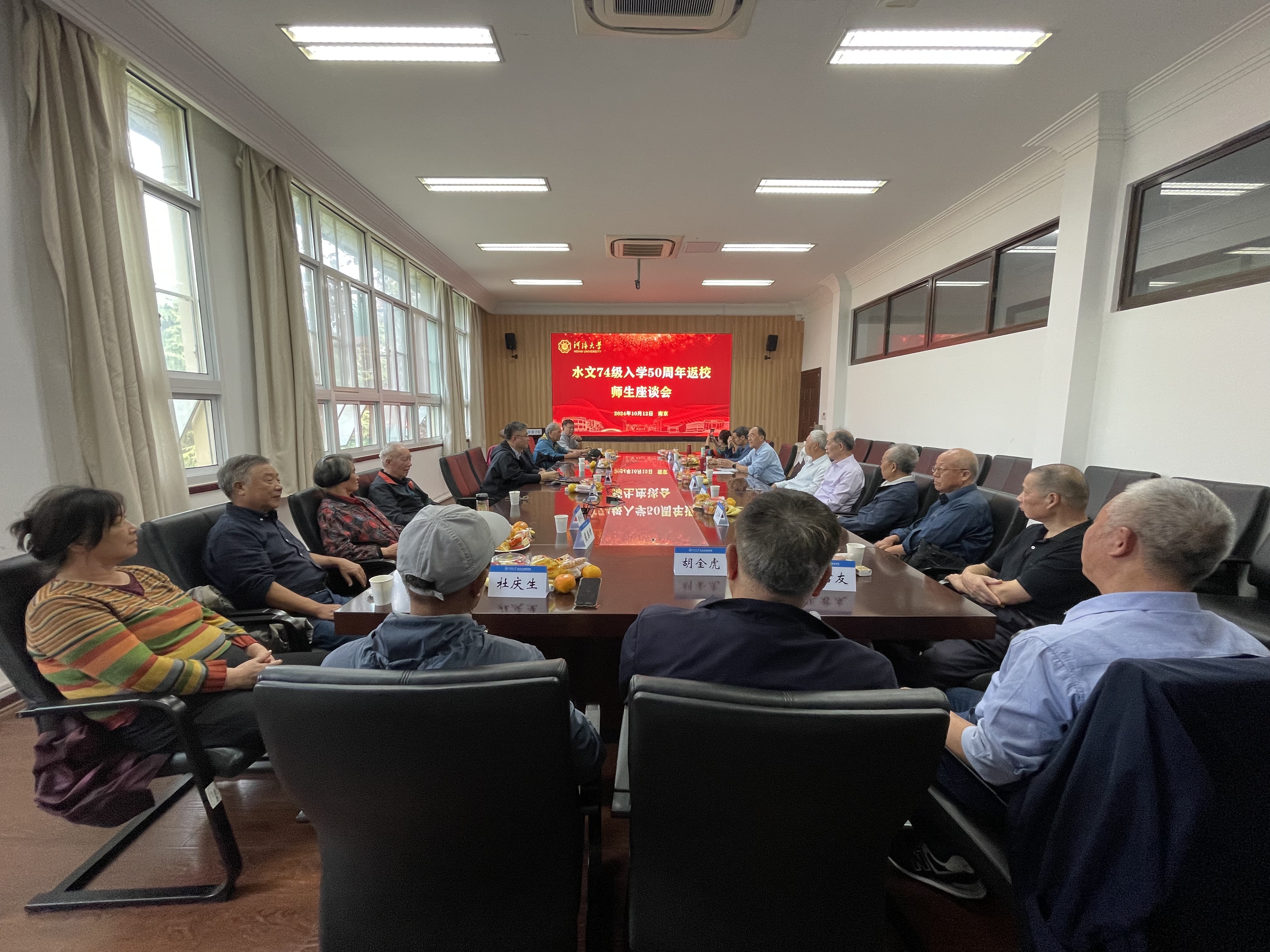 10月12日下午,国产自拍 (原华东水利学院)水文专业74级近20位校友重返母校,在西康路校区工程馆303举行师生座谈会。学院党委书记石朋教授、副院长任黎教授,以及时任班主任、现年九十岁高龄的林季烽老师参加座谈会。