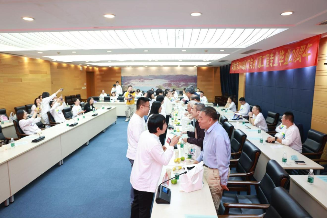 下午,水文2000级校友毕业20周年座谈会在西康路校区闻天馆203举行,同时进行线上直播。崔广柏教授、谢悦波教授、李光炽教授、陈元芳教授、钟平安教授、李致家教授、李国芳教授等时任教师、班导师和时任辅导员宋亚琼老师受邀参加了此次座谈会。时任系主任陈元芳教授作为教师代表表示,毕业20年之际再见到大家,很高兴、很亲切,热烈欢迎各位校友返校;他介绍了学校、学院近十年来新增金坛校区、办学专业调整等方面的变化以及在教育教学、科研与社会服务方面取得的八大亮点成绩;感谢各位校友对学院工作的关心与大力支持,希望大家牢牢抓住事业发展黄金期,注意保护身体健康,常回家看看,并欢迎大家对学院人才培养等提出宝贵意见。退休教师崔广柏教授回顾了与同学们相处的日子,分享了其退休后继续发挥余热为学校服务的经历,还对水文2000级毕业生今后的工作与生活提出了殷切期望。随后,与会校友逐一发言,回忆起在校学习期间老师的言传身教,纷纷表示在校所学到的知识和能力给工作带来了深远正向的影响,表达了对老师和同学们的感激之情;老师们看到同学们取得的成绩,深感骄傲和自豪。