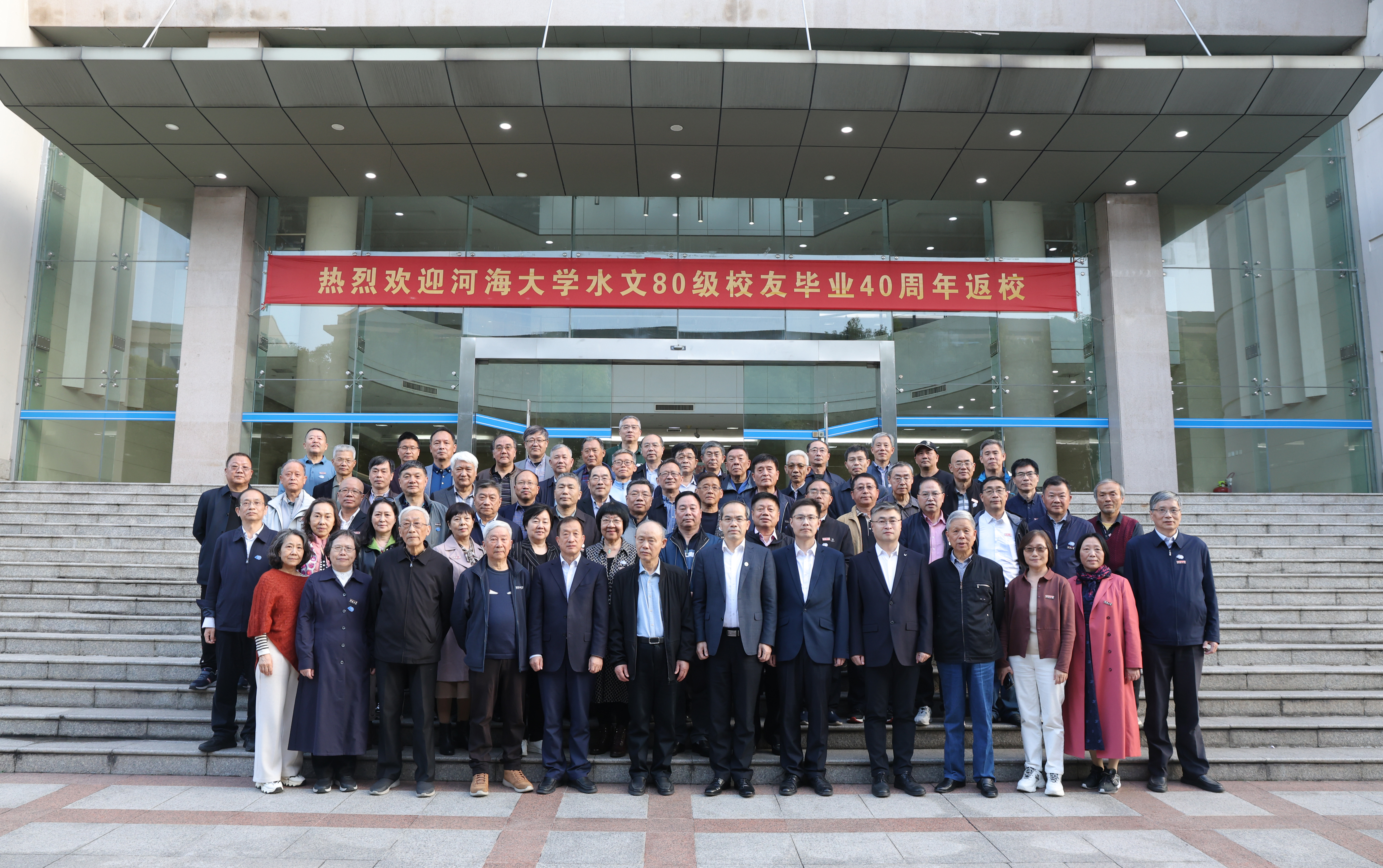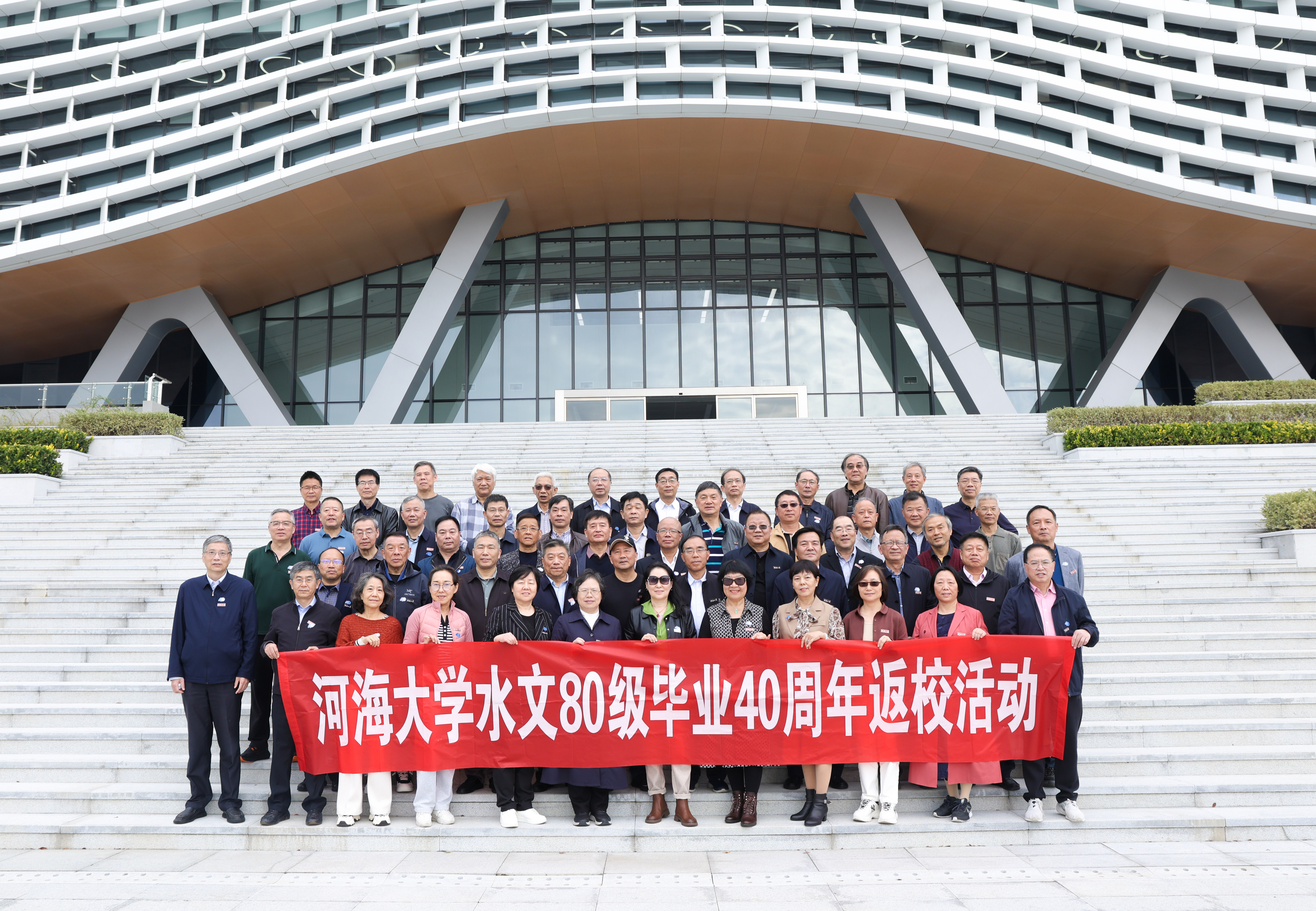初冬时节,气候宜人。11月10日,国产自拍 水文80级60余位同学从祖国的四面八方回到母校,举办了纪念毕业四十周年返校活动。上午,校友们怀着喜悦的心情驱车前往金坛新校区,从学校南大门出发,先后参观了设施一流的体育馆、豪华气派的图书馆、明亮宽敞的教学楼和温馨舒适的学生宿舍。校友们对新校区校园规划、软硬件设施大加赞叹。参观结束后,校友们还饶有兴致地在二食堂排队就餐,回味美好的学生生活。