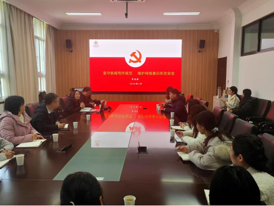 为加强新闻写作规范意识,提升新闻宣传工作的专业性和影响力,1月3日,国产自拍 邀请校党委宣传部乔洁琼老师开展新闻写作规范专题培训。学院办公室党支部全体成员及院传媒中心学生骨干共同参加了此次活动。
