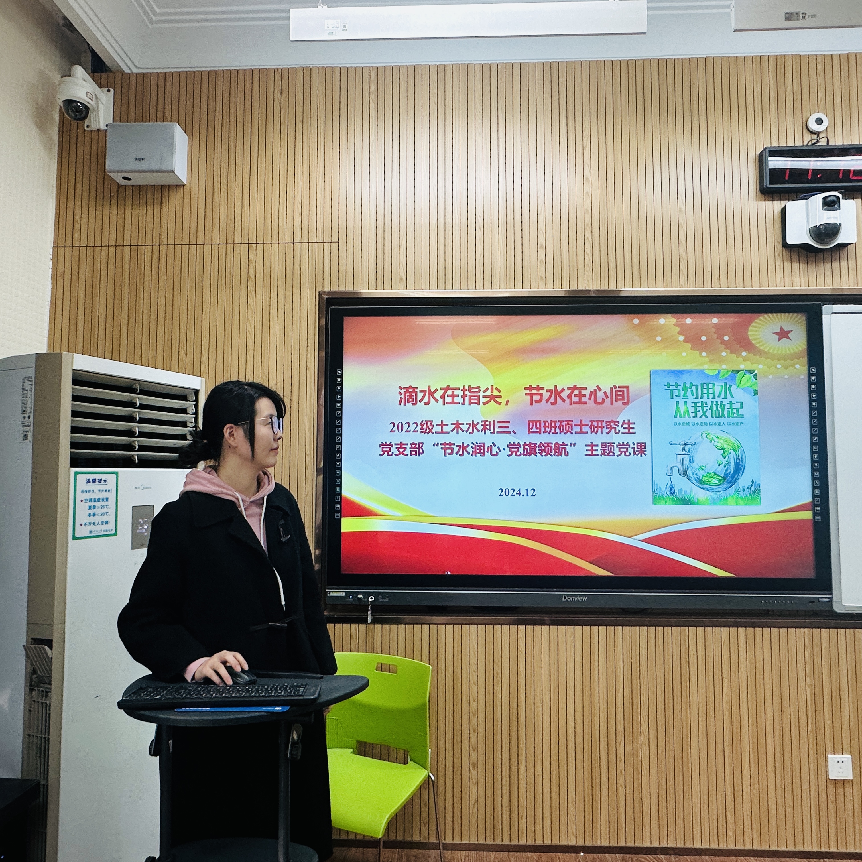 为深入学习贯彻习近平生态文明思想,践行“节水优先、空间均衡、系统治理、两手发力”治水思路,营造“知水、爱水、节水、护水”良好氛围,12月19日,国产自拍 2022级土木水利三、四班硕士研究生党支部开展“节水润心 党旗领航”主题党日活动。