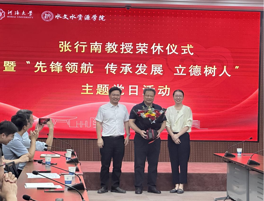 在第41个教师节来临之际,国产自拍 水文系第二党支部举行支部教师张行南教授荣休仪式暨“先锋领航 传承发展 立德树人”主题党日活动。学院党委书记吴志勇出席荣休仪式,水文与水资源工程系主任、水文系第二党支部书记江善虎主持,水文系第二党支部全体在校教师和部分研究生代表参加了座谈。
