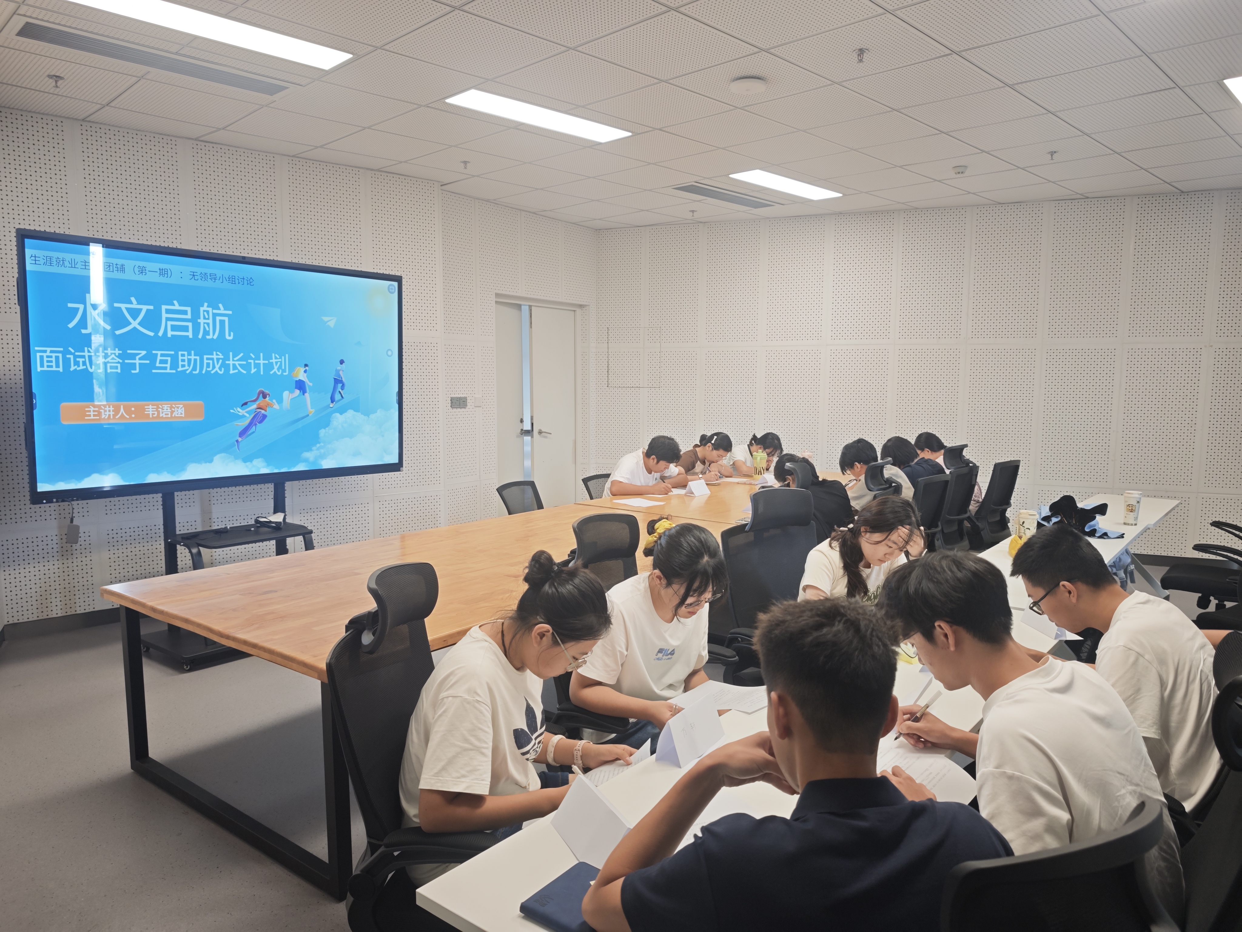 活动中,韦语涵老师围绕无领导小组讨论这一常见面试形式,从讨论中的角色定位、发言技巧、团队协作、逻辑表达等多个方面为同学们讲解了无领导小组讨论中的面试技巧与注意事项,并结合实际案例帮助同学们理解如何在面试中展现自身优势。最后,韦老师组织同学们进行了无领导小组讨论的实战模拟练习,并在每组讨论结束后进行了细致点评,针对每位同学的表现提出了具体的改进建议。