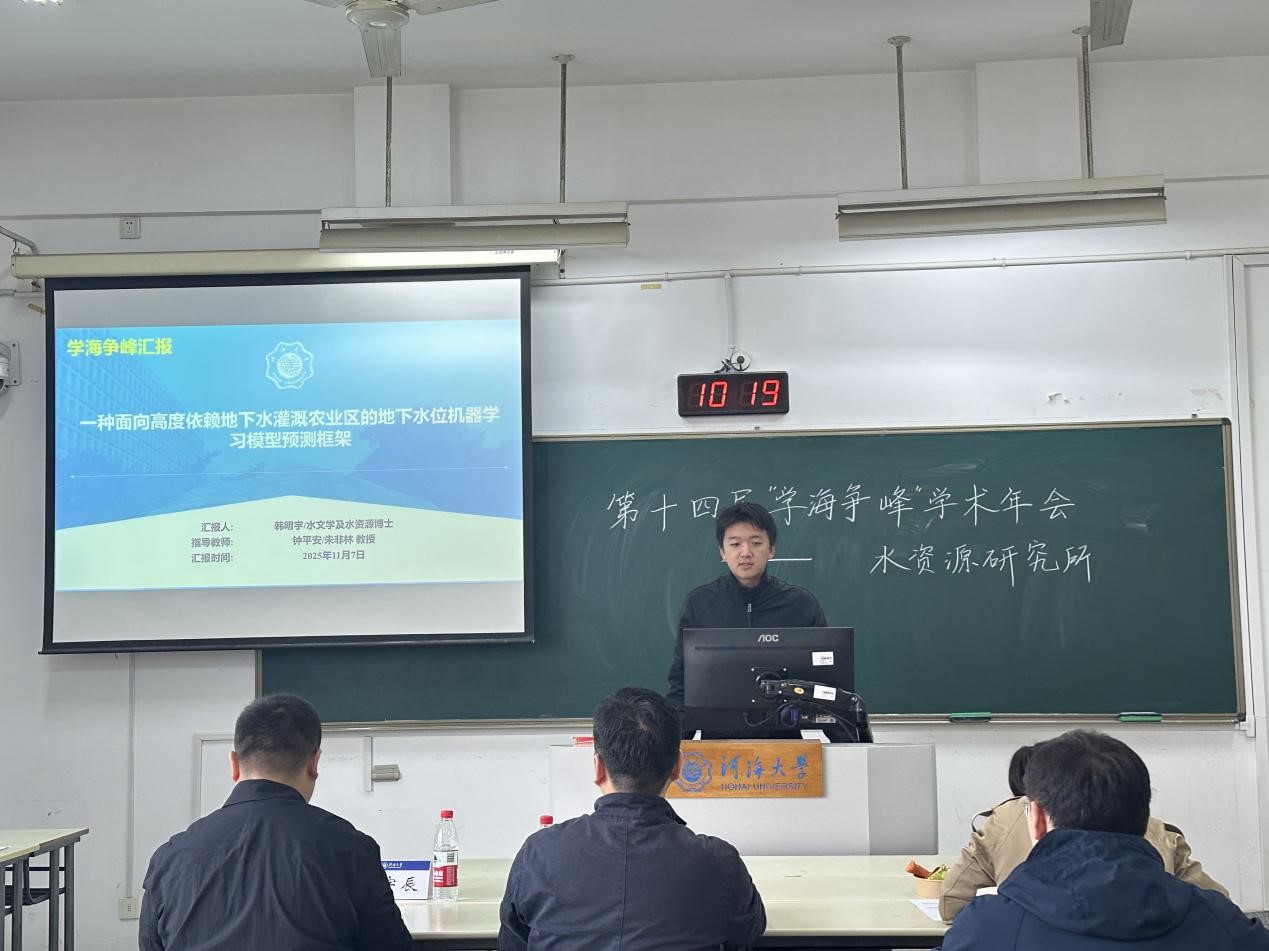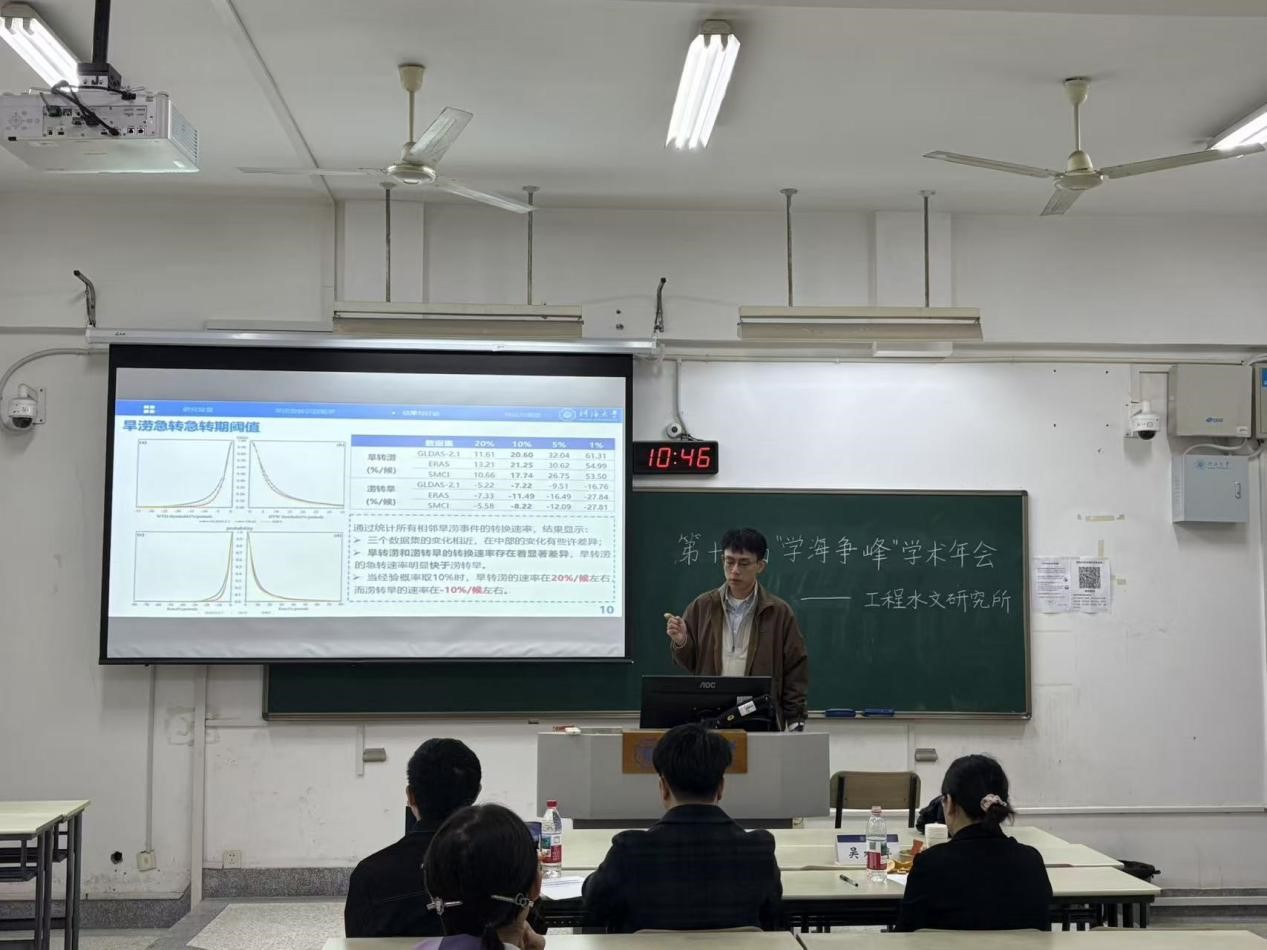 本次学术年会吸引近 70 名硕博研究生同台竞技,设有智慧水文研究所、水资源研究所、水务工程与水文预报研究所、全球变化研究所、工程水文研究所、生态水文研究所六个专业分会场,覆盖水文水资源领域多个前沿研究方向。各分会场中,汇报学子围绕洪涝防控、气候变化响应、水文监测智能化、生态修复等关键课题,分享最新研究成果、交流学术见解,展现出扎实的科研功底与饱满的创新热情。经过激烈角逐,各分会场分别评选出“最优汇报人”与“最佳 PPT 文稿”获奖者。