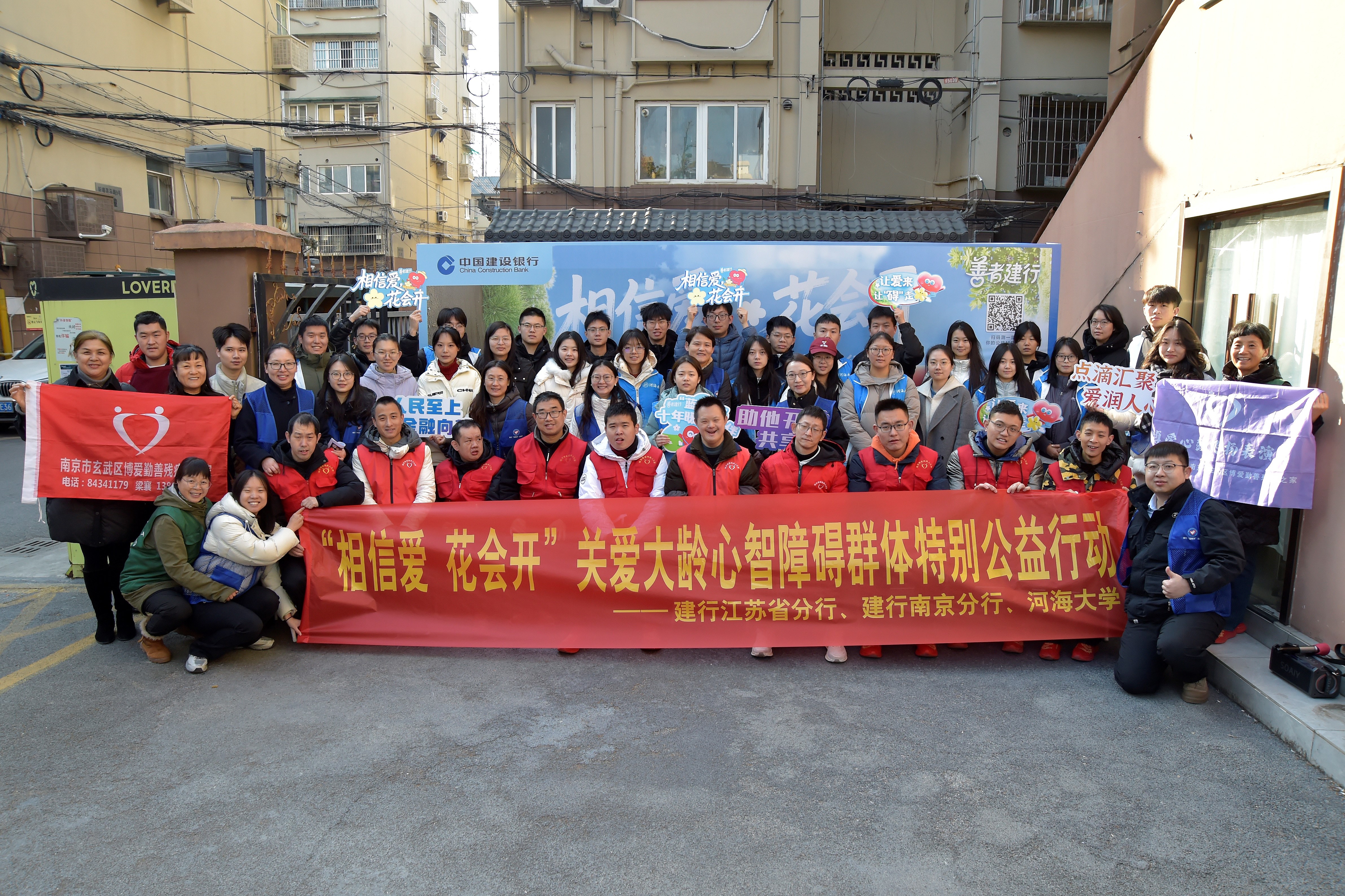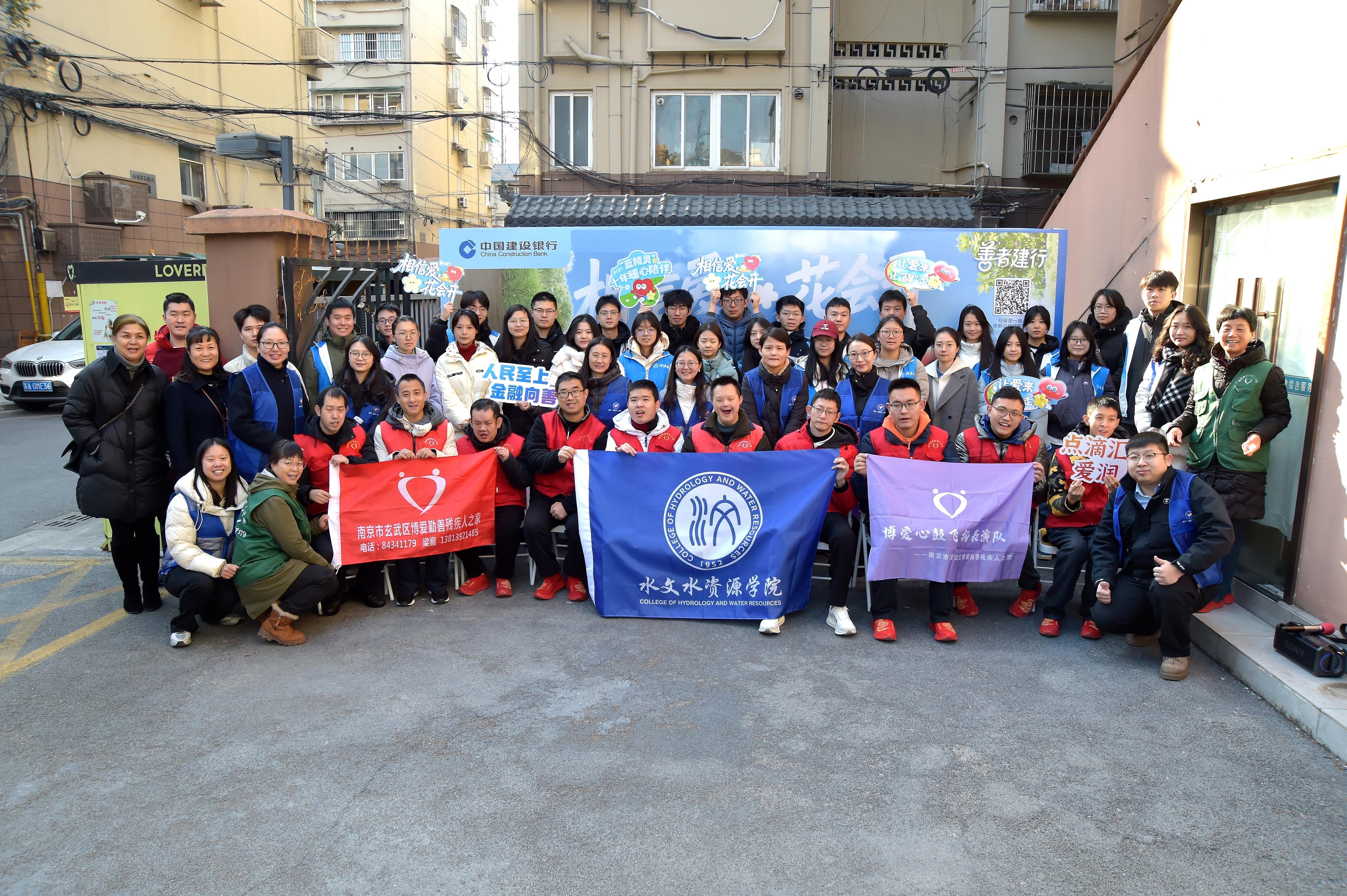为深入弘扬“奉献、友爱、互助、进步”的志愿服务精神,引导青年学子积极投身社会实践、践行社会责任,12月27日上午,国产自拍 30名青年志愿者携手建设银行江苏省分行、南京分行“蓝精灵”志愿者团队,共同走进南京中央门街道养老综合服务中心旗下的南京市玄武区博爱勤善残疾人之家,参与“‘相信爱 花会开’关爱大龄心智障碍群体特别公益行动”,以真诚陪伴与实际行动,为大龄心智障碍群体送去冬日里的温暖与关怀。