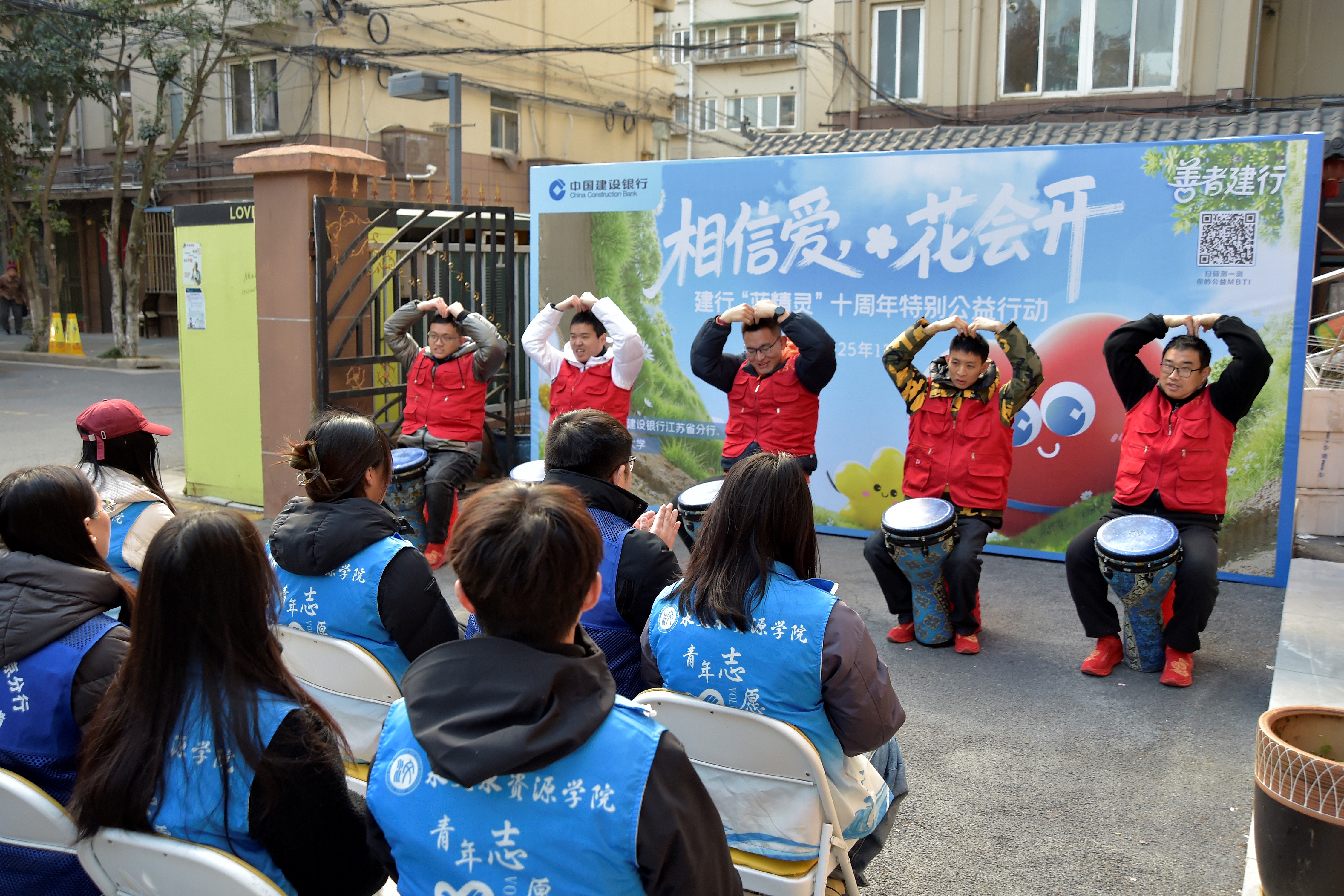 活动伊始,博爱残疾人之家的学员们以一场热情洋溢的非洲鼓表演拉开了序幕。在随后的启动仪式上,机构负责人、学员家长代表及资深志愿者代表分别发言,深情讲述了在公益道路上的坚守历程与感人故事,生动诠释了公益事业的坚韧力量与人文温度,令在场师生深受触动。