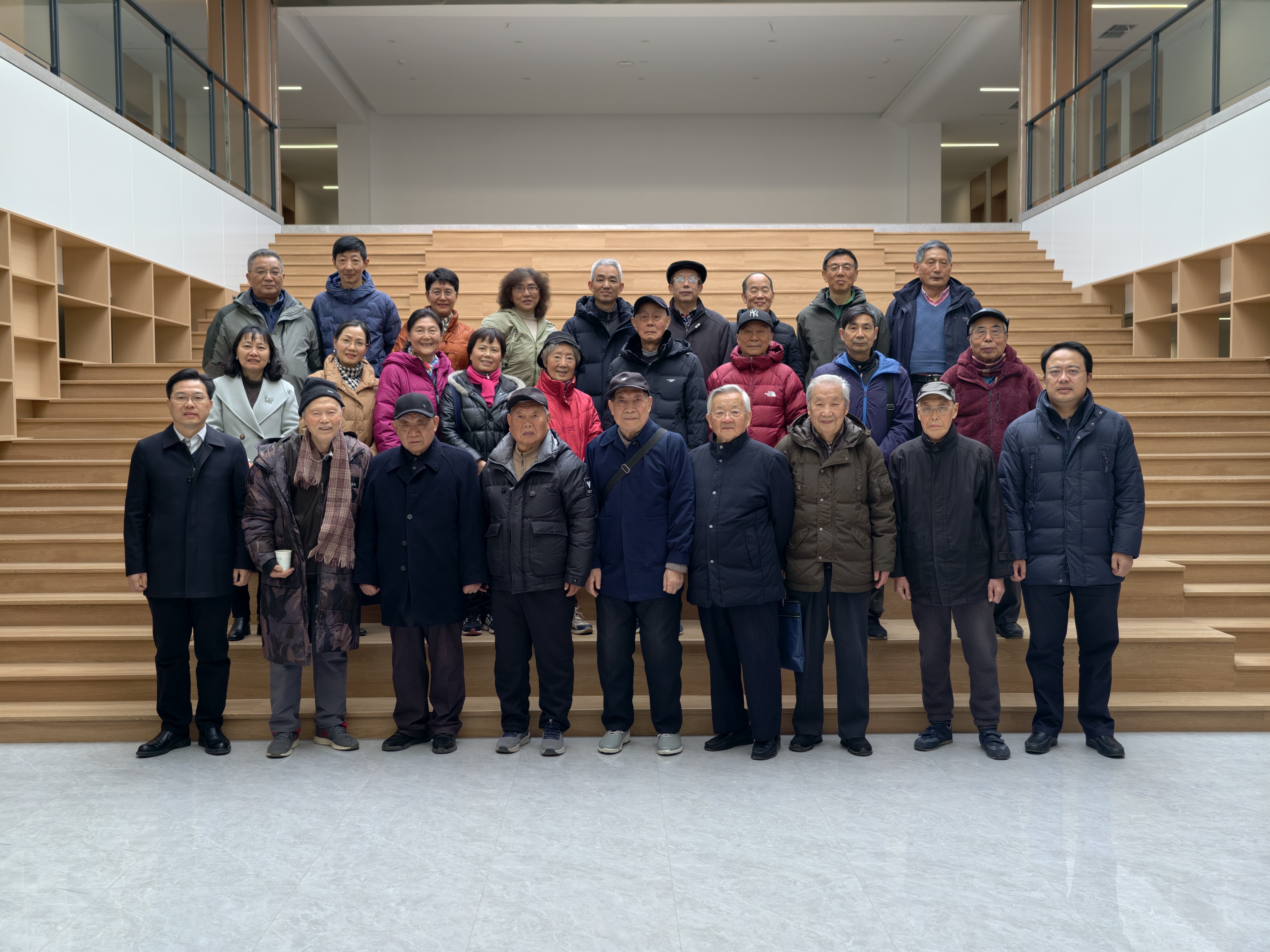座谈会前,在吴志勇书记的陪同下,老教师们参观了新水文楼的办公环境。看到学院拥有了独立楼宇、办公条件得到大幅改善,大家倍感欣慰。参观结束后,全体人员在二楼大楼梯处合影留念,定格美好瞬间。