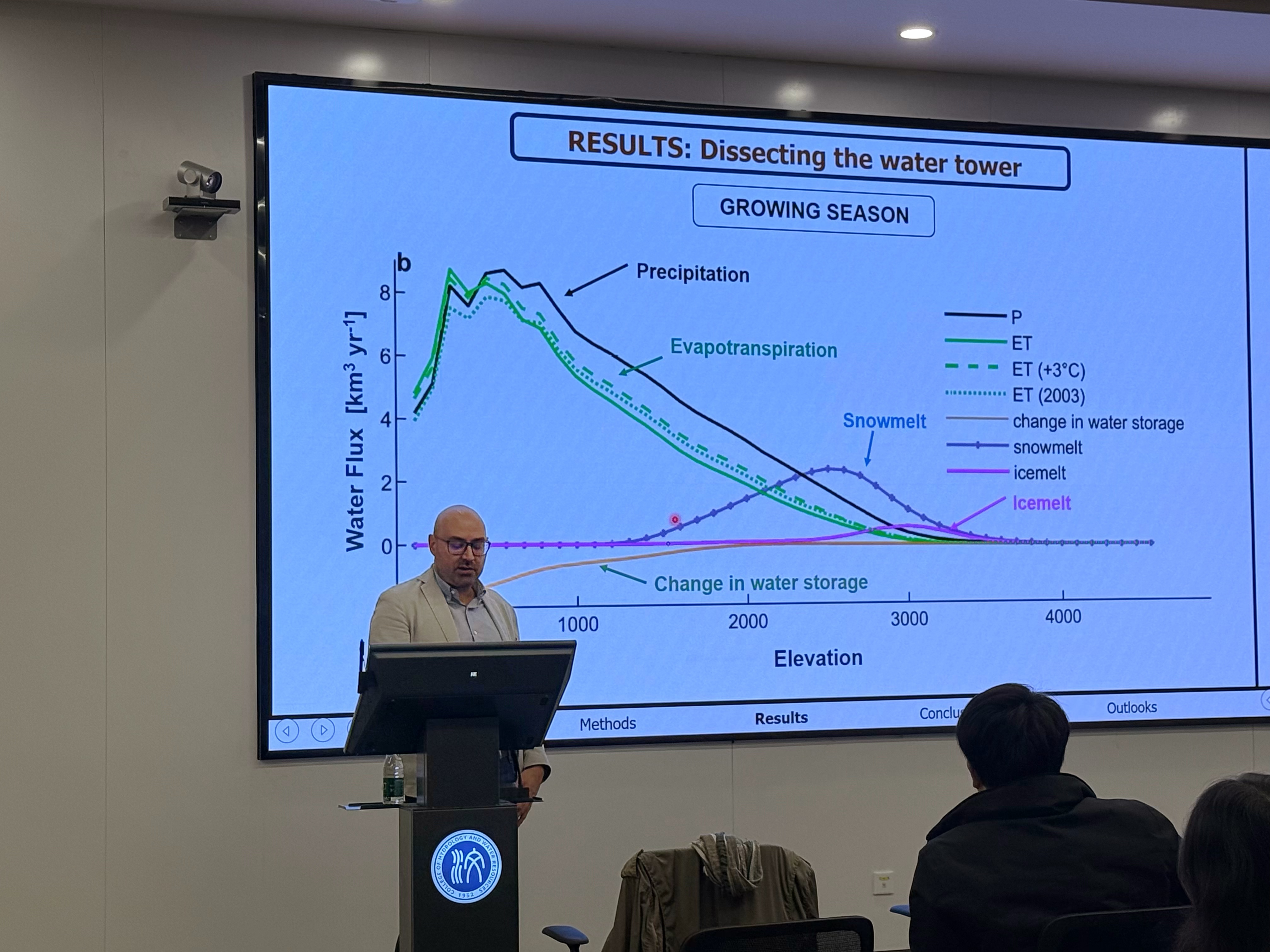 Fatichi教授的报告围绕基于机理的生态水文模拟方法展开,通过澳大利亚世界最高森林野火后蒸散发与产水量变化、欧洲阿尔卑斯山区流域对极端干旱事件的响应过程、植物水分利用效率沿干旱梯度的空间变异规律三个典型案例,系统阐述了其核心学术观点:将基于机理的陆地生物圈模型与观测数据深度融合,能够有效揭示生态系统对环境变化的非线性响应机制,为水碳循环的精准预测提供科学支撑。Fatichi教授的研究为变化环境下流域生态水文过程的理解与模拟提供了新的思路与方法。