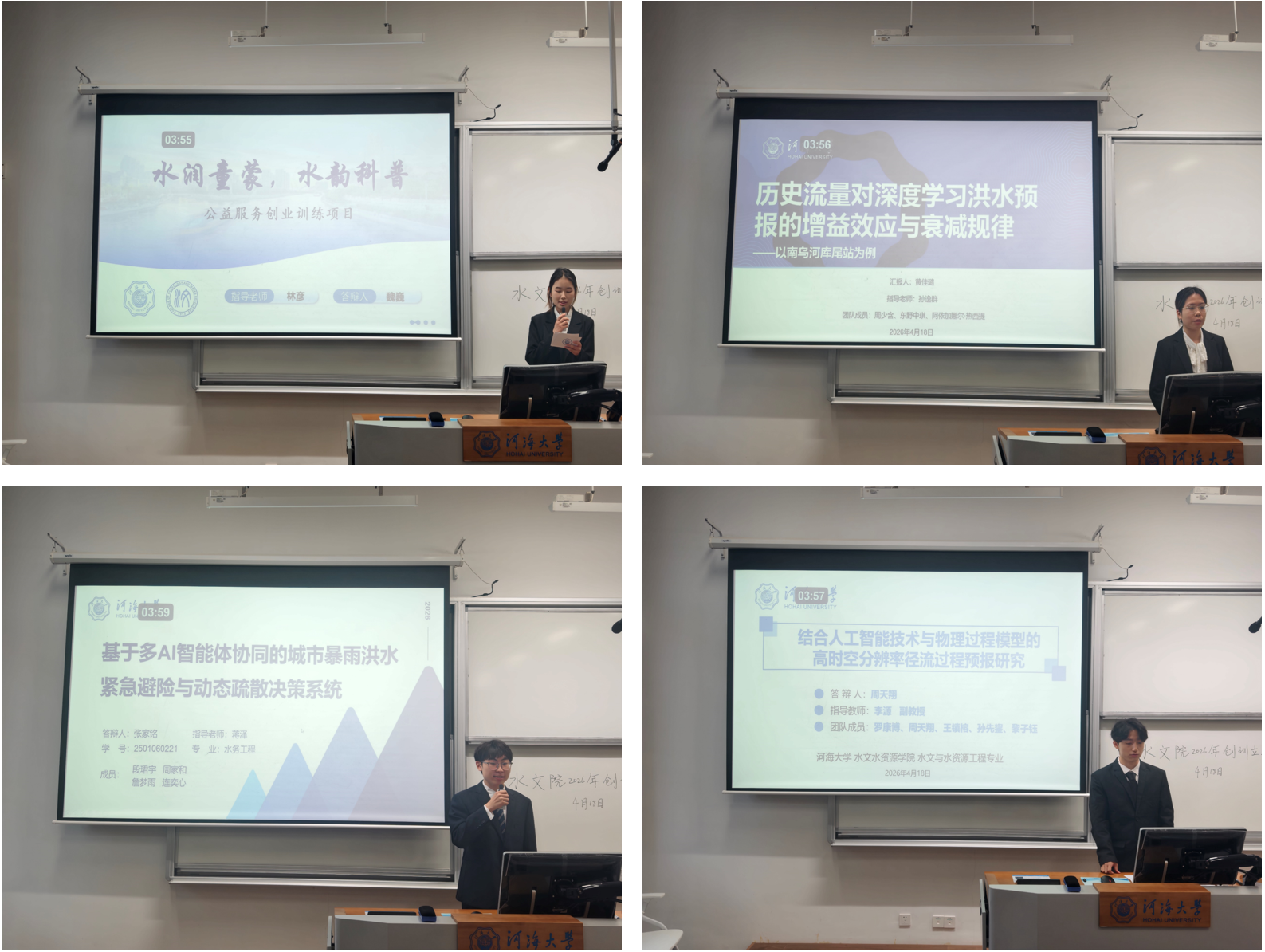 本次答辩会共有52个项目团队参加,涵盖智能水文预报、城市水安全、水资源高效利用、水环境生态、水利科普公益等多个前沿方向。各团队围绕项目研究内容、技术路线、前期基础、实施计划与预期成果展开全面汇报,充分展现了扎实的专业功底与活跃的创新思维。