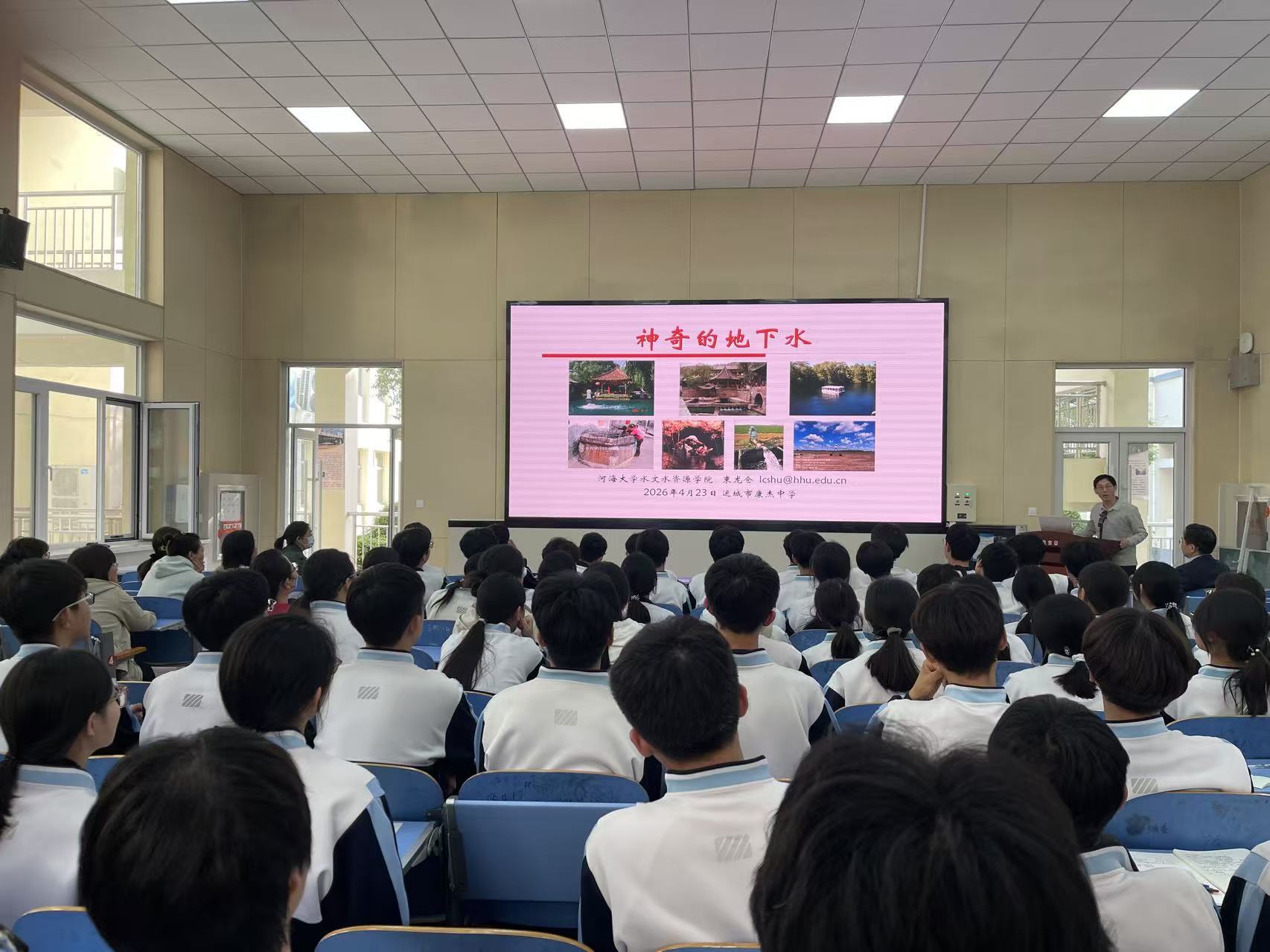 座谈结束后,吴志勇书记以《百十河海欢迎你》为题开展专题宣讲,面向高二学生及家长全面介绍国产自拍 的学科实力、培养模式、校园环境与发展前景,鼓励康杰学子立志报国、追梦水利事业,报考国产自拍 书写青春华章。随后,束龙仓教授带来《神奇的地下水》科普讲座,讲座围绕地下水概念、资源优势、开发利用现状及环境地质问题等方面展开,结合真实案例与详实数据,深入浅出讲解地下水资源保护与生态安全的重要意义,内容生动、贴近生活,有效激发了学生对水文水资源学科的兴趣与探索热情。