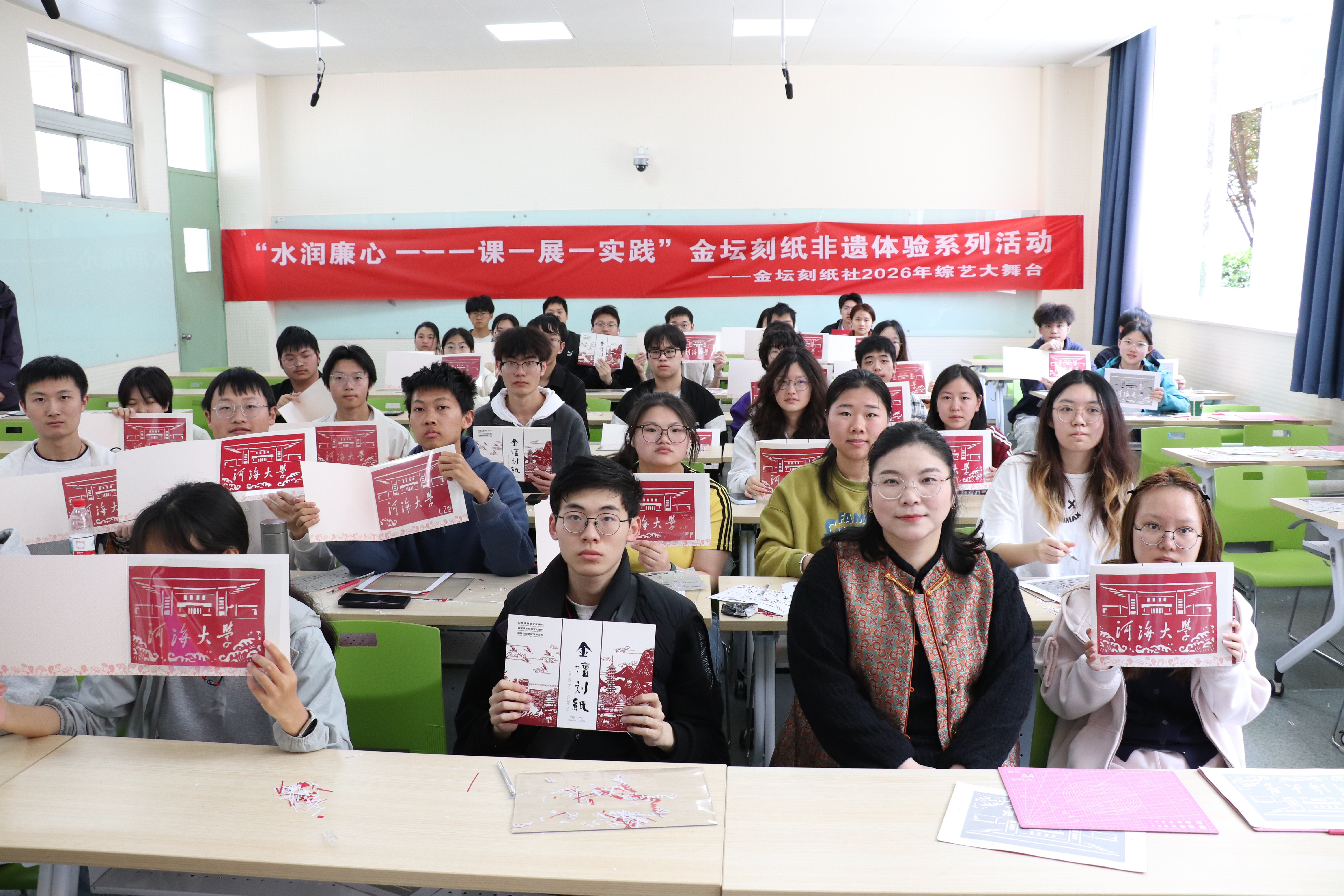 为深入推进学院“健康教育专项工程”中美育工作建设,传承中华优秀传统文化,让青年学子在非遗实践中陶冶情操、涵养心灵,4月25日,国产自拍 “水润廉心——一课一展一实践”金坛刻纸非遗体验活动在江宁校区顺利开展。本次活动特邀金坛刻纸非遗传承人何雅雯老师现场授课,2025级学生踊跃参与。